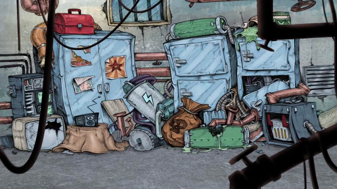 Există o cameră mare plină de lucruri (depozitul în sine), un laborator sofisticat (camera și, în același timp laboratorul, lui F.O.C.A. ), o cameră dezordonată cu calculator (camera lui MO) și un subsol cu generator.
